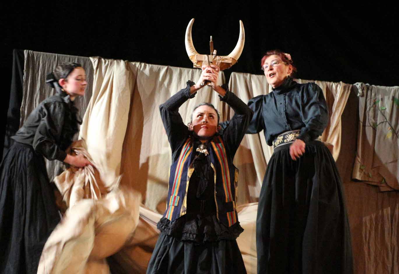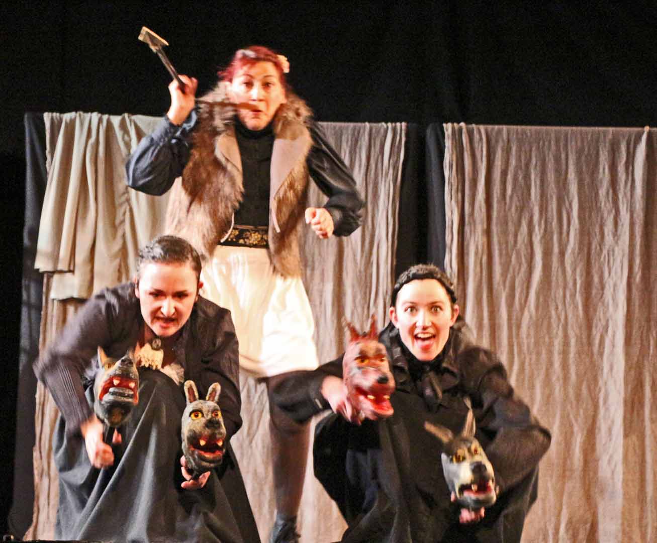 L’harmonie : Passant de 4 à 3 personnages, la dernière réécriture a, comme par magie, aligné tous les éléments du spectacle pour construire la figure si féconde du triangle : 3 personnages, 3 âges de la vie, 3 sensibilités, 3 histoires, 3 régions, l’Alsace tiraillée entre l’Allemagne et la France, 3 mythes. Deux points opposés et une médiane : Le sauvage, le sacré et l’humanité.