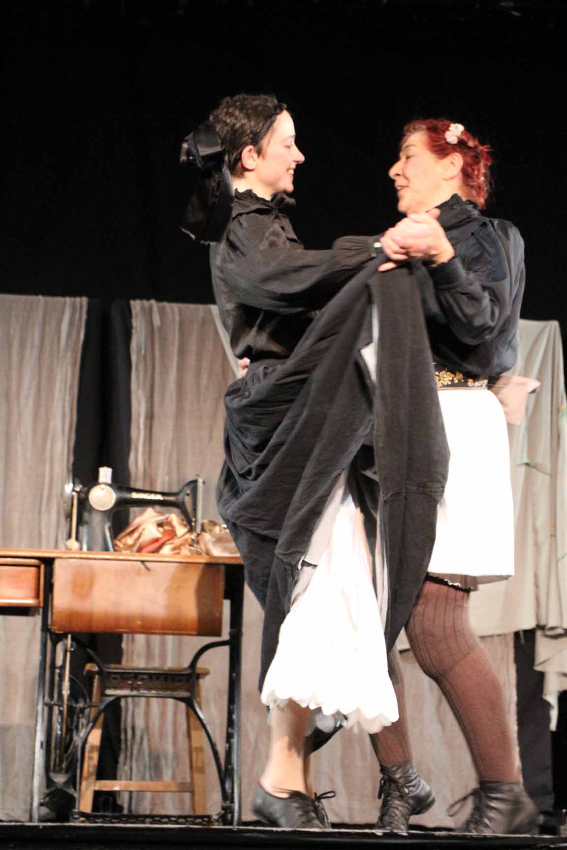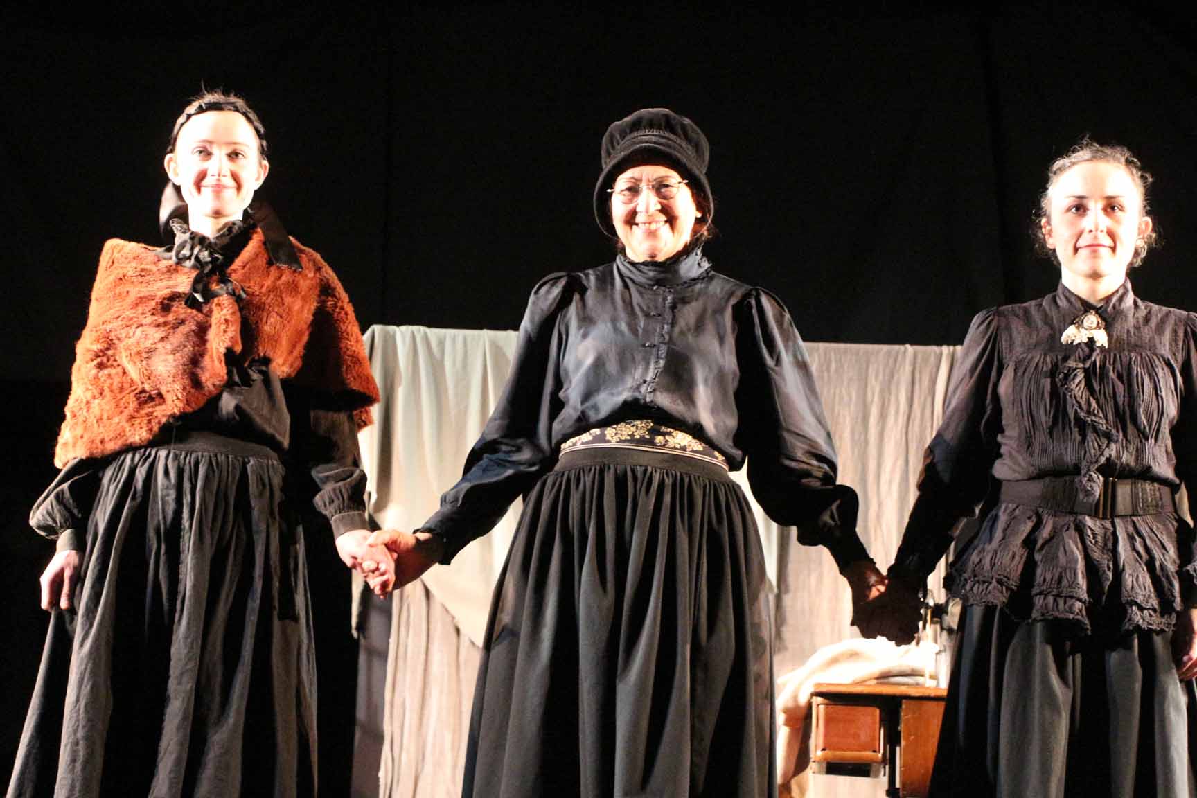 Les trois ouvrières dans leur atelier de réparation et de couture des costumes et accessoires de scène.