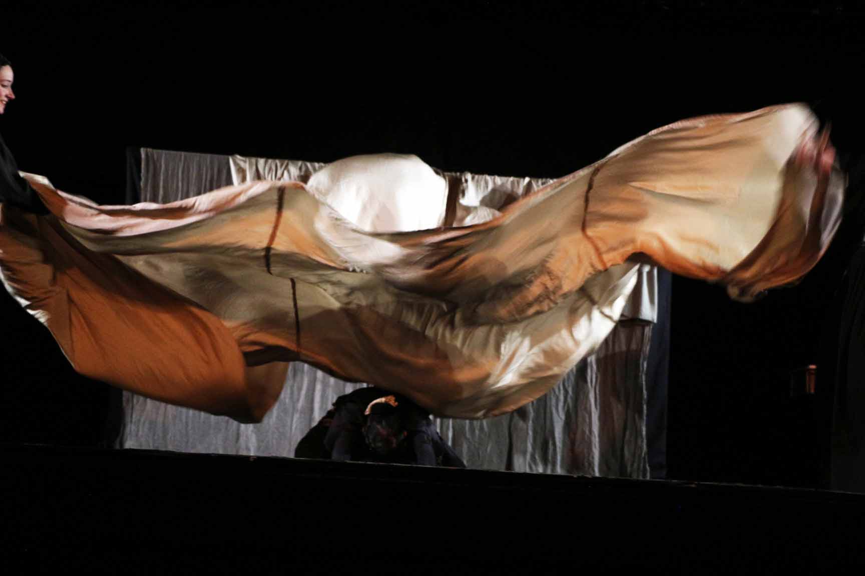 la mise en scène est de Christa Wolff, accompagnée par Vincent Mangado, comédien au Théâtre du Soleil.