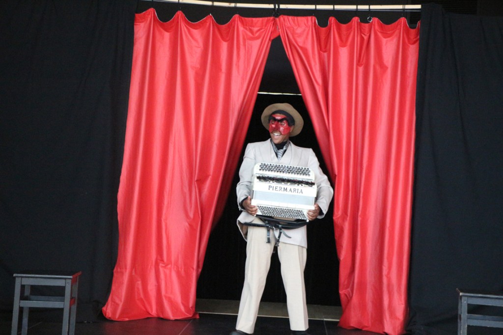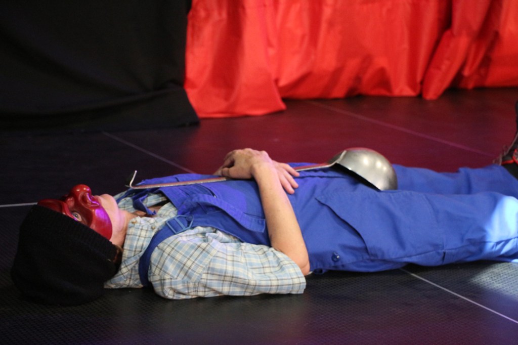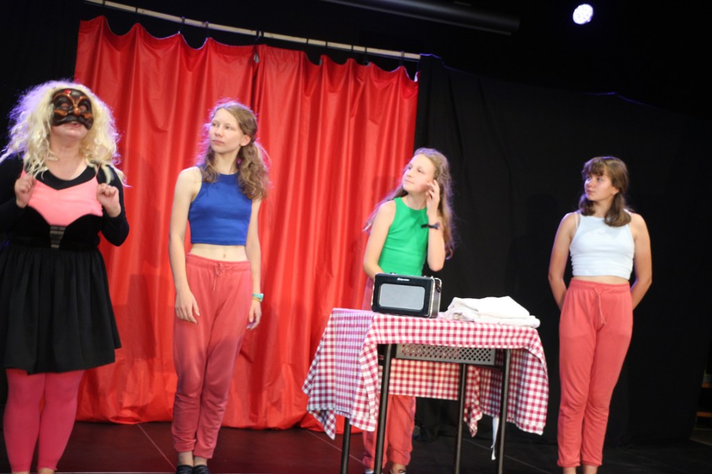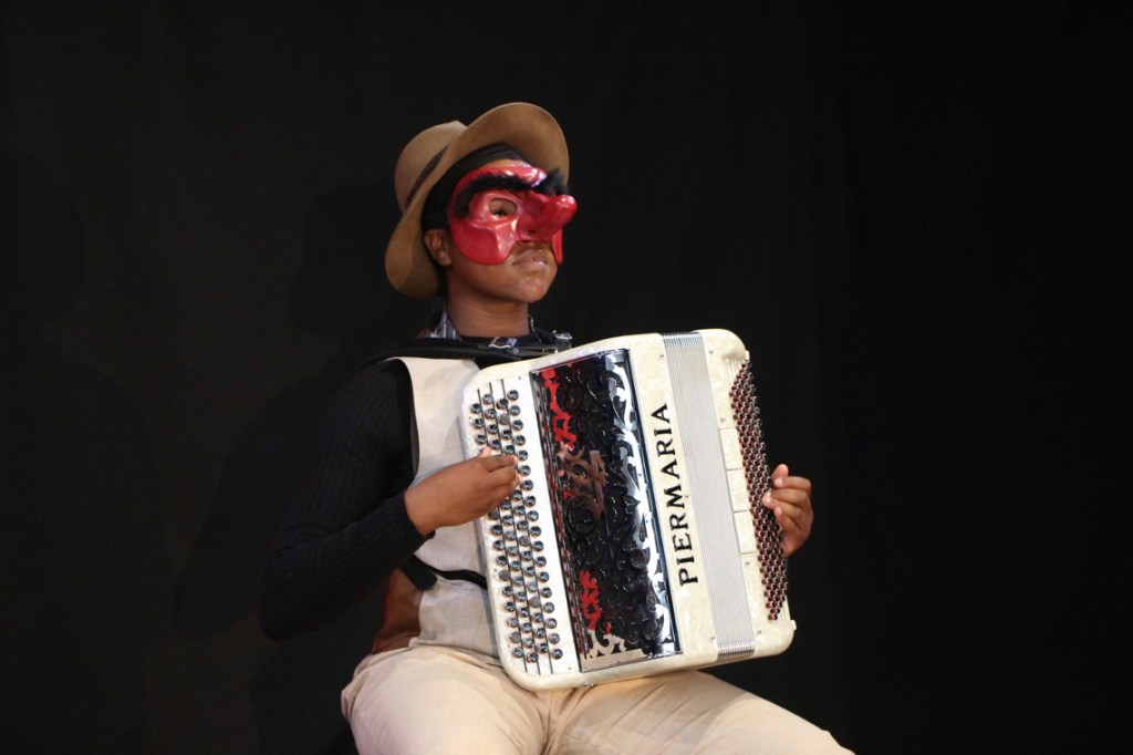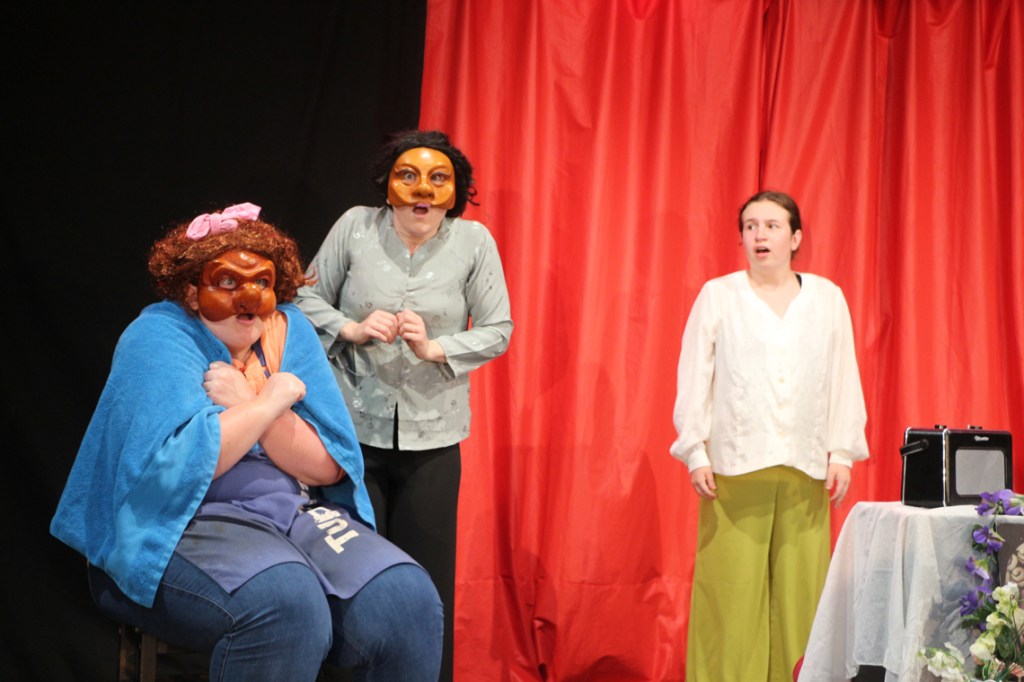 Cette fable nous ramène dans un temps historique que nous connaissons bien : Jeux vidéo et portables, Tupperware et rollers, Britney Spears et McDo… Mais interprétée par les personnages masqués de la Commedia Dell’Arte, la fable devient comédie. Une troupe de jeunes premières et de jeunes premiers nous entraîne dans une farandole endiablée, balayant les peurs et les rancœurs des adultes, dans un éclat de rire salutaire.