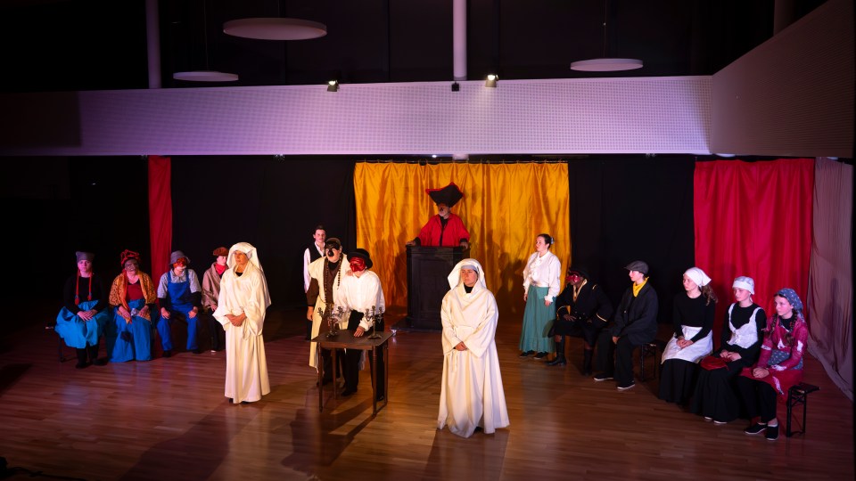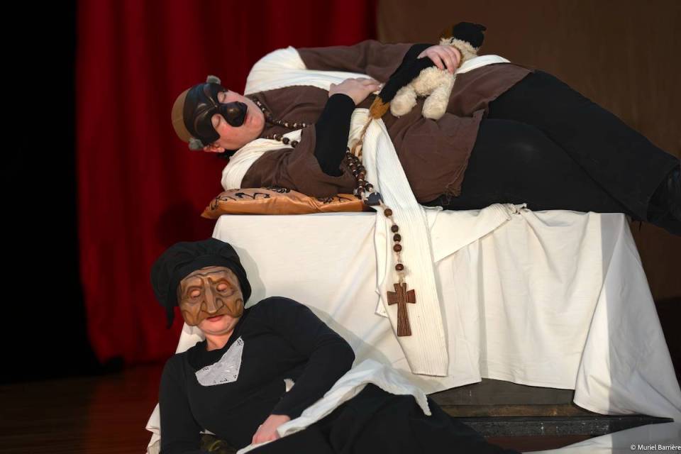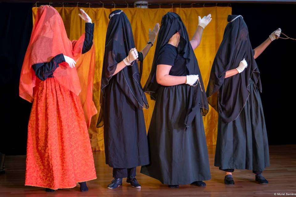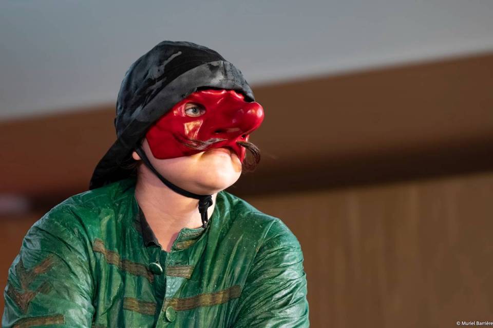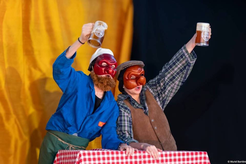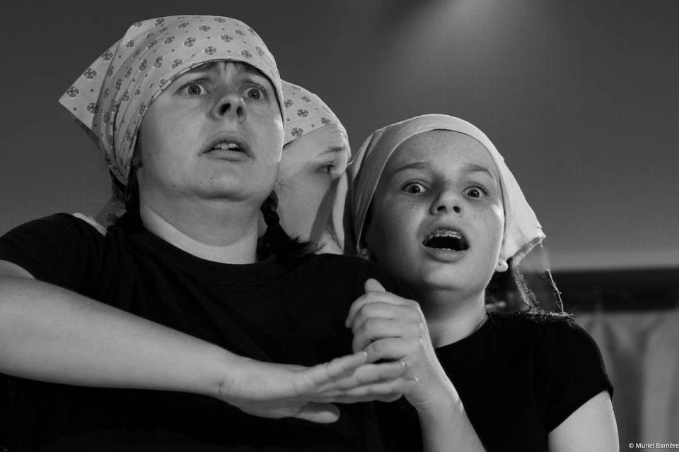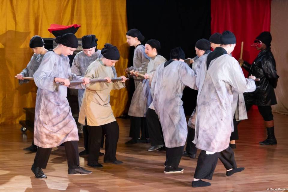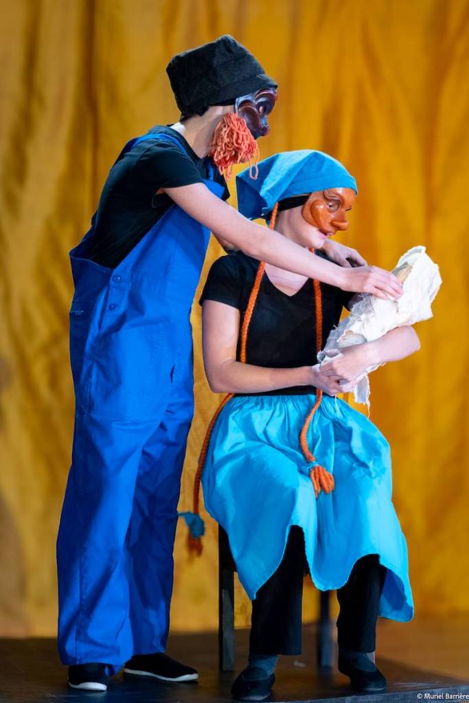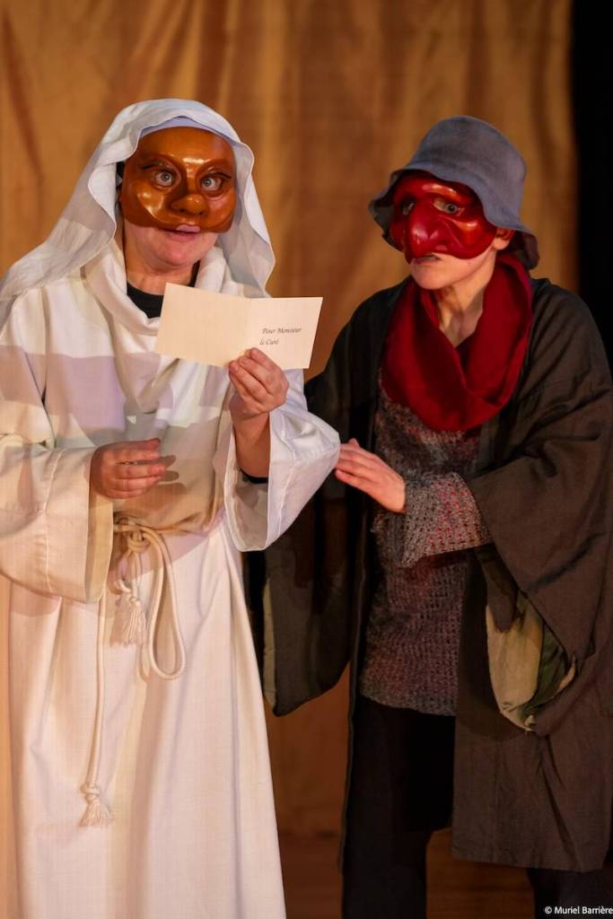 Les 14 comédiens de la troupe intergénérationnelle du THENSO incarnent plus de trente personnages, tantôt en chœur (les bagnards, les ouvrières) tantôt avec des masques de commedia dell’Arte, pour créer un spectacle à la fois burlesque et grave, poétique et émouvant, populaire et vivant.