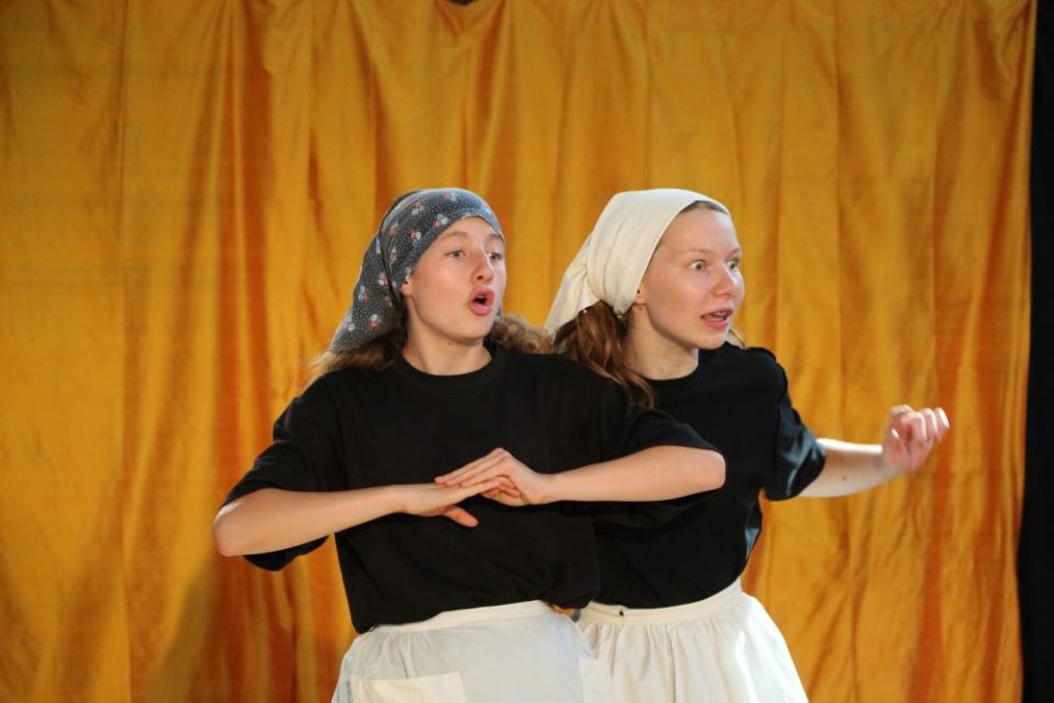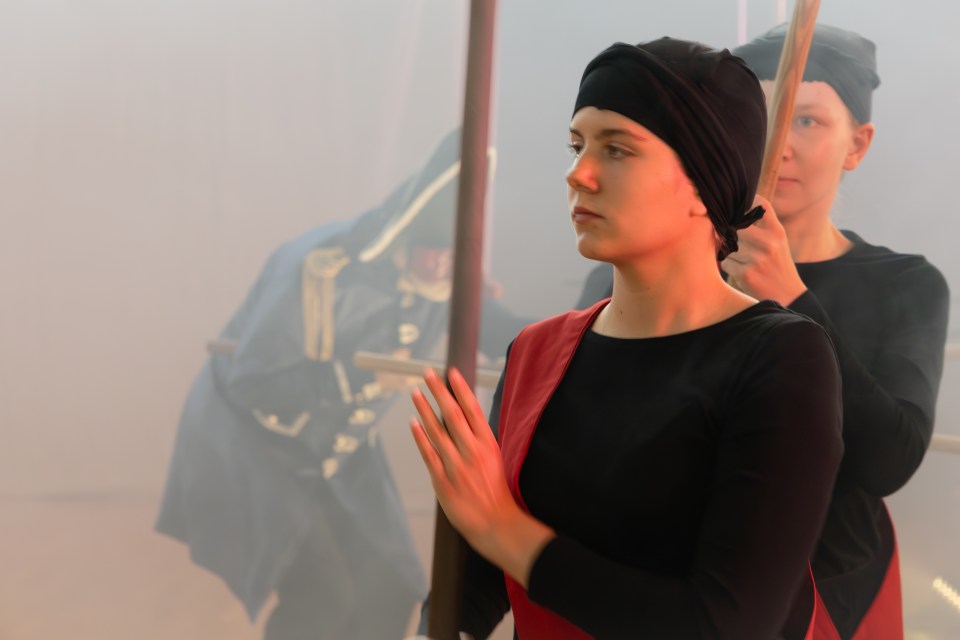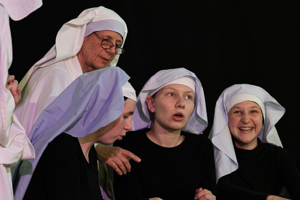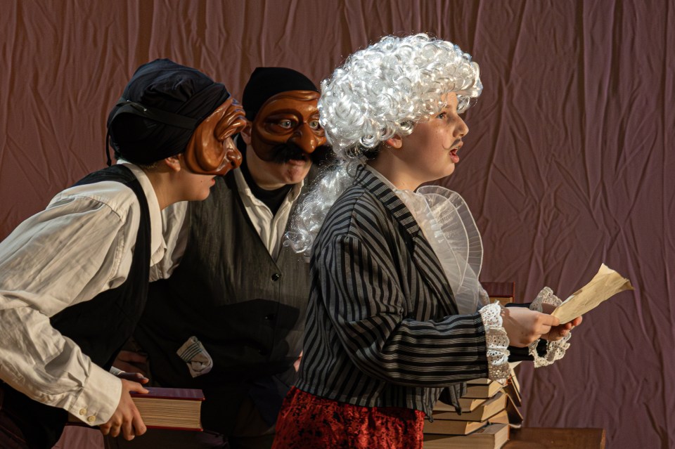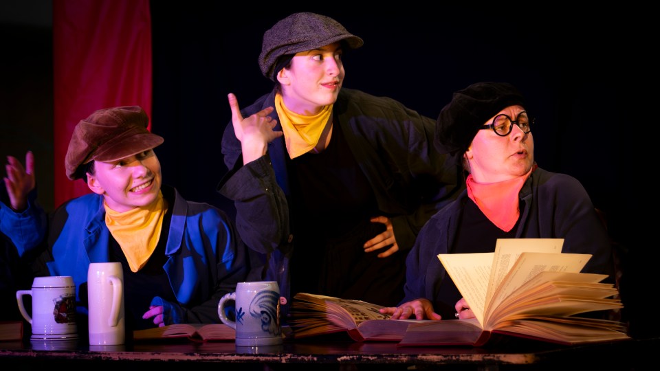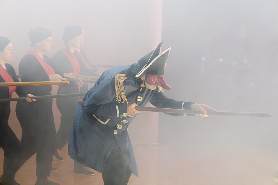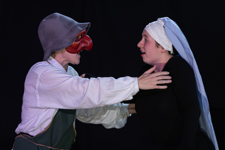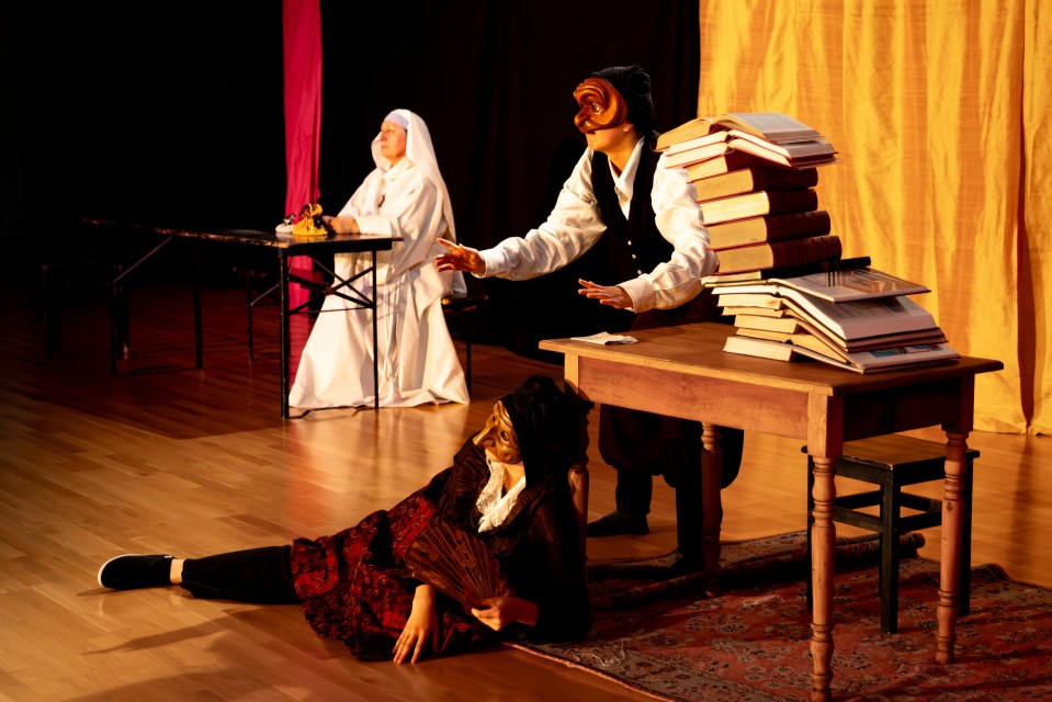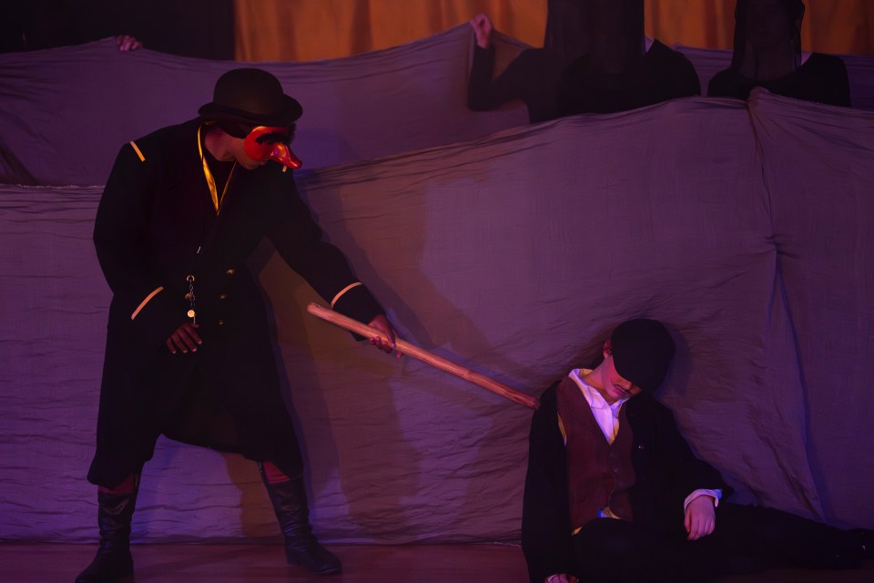 Les 14 comédiens de la troupe intergénérationnelle du THENSO incarnent plus de trente personnages, tantôt en chœur (les bagnards, les ouvrières) tantôt avec des masques de commedia dell’Arte, pour créer un spectacle à la fois burlesque et grave, poétique et émouvant, populaire et vivant.